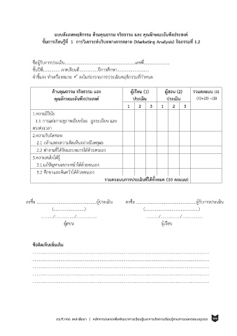 ขั้นการเรียนรู้ที่ 1 การวิเคราะห์บริบททางการตลาด (Marketing Analysis) กิจกรรมที่ 1.2