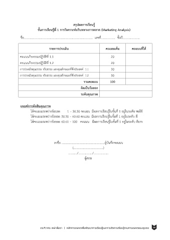1 - ท างานขาดความละเอียดรอบคอบ และ ได้คะแนนระหว่างร้อยละ 60.61 – 100 คะแนน มีผลการเรียนรู้ในขั้นที่ 1 อยู่ในระดับ ดมาก