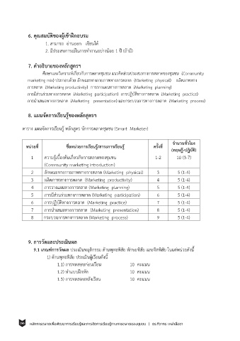 ตาราง แผนจัดการเรียนรู้ หลักสูตร นักการตลาดชุมชน (Smart Marketer)