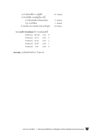 9.2 เกณฑ์การประเมินผล มีการประเมินผลดงนี้