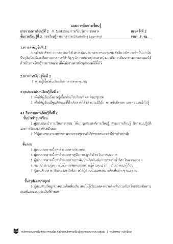 ขั้นการเรียนรู้ที่ 2 การเรียนรู้ทางการตลาด (Marketing Learning) เวลา 5 ชม.