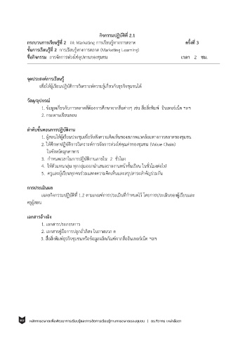 กระบวนการเรียนรู้ที่ 2 M: Marketing การเรียนรู้ทางการตลาด ครั้งที่ 3