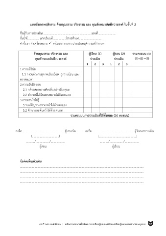 แบบสังเกตพฤติกรรม ด้านคุณธรรม จริยธรรม และ คุณลักษณะอันพึงประสงค์ ในขั้นท 2