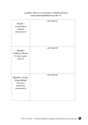 แบบฟอร์มการวิเคราะห์ การแบ่งส่วนตลาด การเลือกตลาดเป้าหมาย