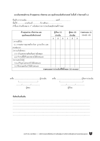 แบบสังเกตพฤติกรรม ด้านคุณธรรม จริยธรรม และ คุณลักษณะอันพึงประสงค์ ในขั้นท 3 กิจกรรมที่ 3.2
