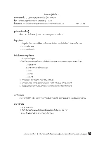 กิจกรรมปฏิบัติที่ 4.1 ตามเกณฑ์การประเมินที่ก าหนดไว้ โดยการประเมินของผู้เรียนและครูผู้สอน