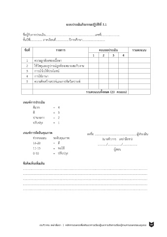 แบบประเมินกิจกรรมปฏิบัติที่ 5.1