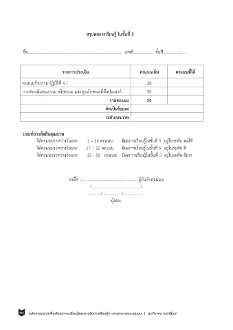 สรุปผลการเรียนร ในขั้นที่ 5