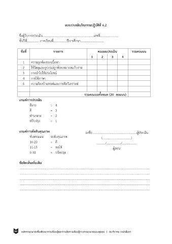 แบบประเมินกิจกรรมปฏิบัติที่ 6.2