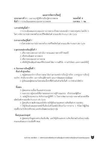 5. แบ่งผเรียนทกคนร่วม ทากิจกรรมปฏิบัตท 7.1 วเคราะห์สถานการณการตลาดดวยวงจรชวต