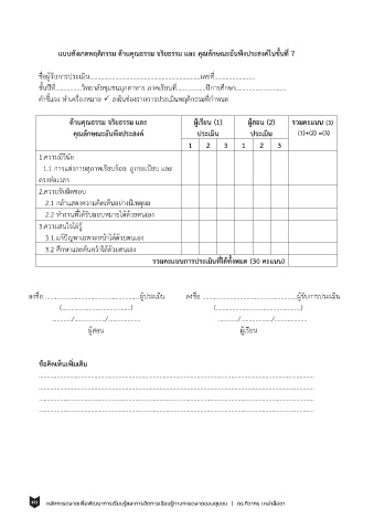แบบสังเกตพฤติกรรม ด้านคุณธรรม จริยธรรม และ คุณลักษณะอันพึงประสงค์ในขั้นที่ 7