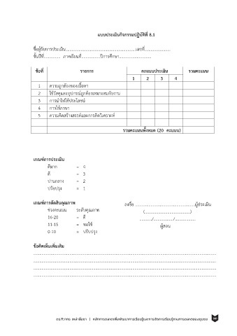 แบบประเมินกิจกรรมปฏิบัติที่ 8.1