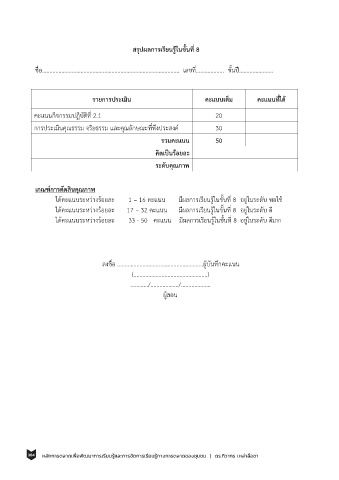 ได้คะแนนระหว่างร้อยละ 33 - 50 คะแนน มีผลการเรียนรู้ในขั้นที่ 8 อยู่ในระดับ ดมาก