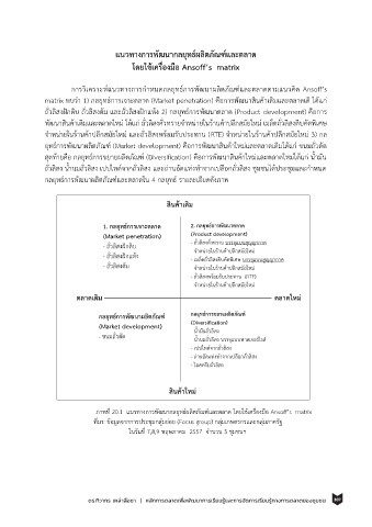การวเคราะหแนวทางการกาหนดกลยทธการพฒนาผลตภณฑและตลาดตามแนวคด Ansoff’s