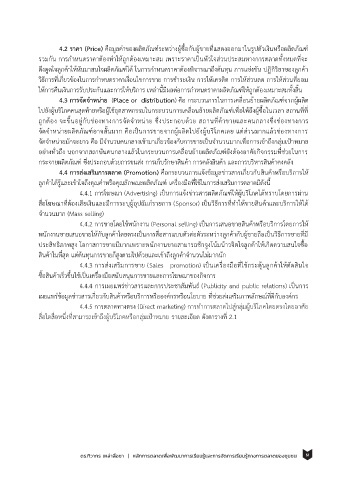 4.2 ราคา (Price) คือมูลค่าของผลิตภัณฑ์ระหว่างผซื้อกับผขายทแสดงออกมาในรูปตวเงินหรือผลตภัณฑ์