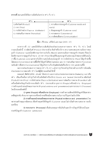 จากตารางท 2.2 แสดงให้เห็นความสมพันธ์ของสวนประสมทางการตลาด 4P’s กับ 4C’s โดยมี