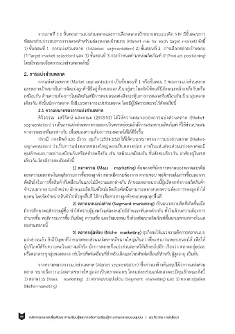จากภาพที่ 5.1 ขั้นตอนการแบ่งส่วนตลาดและการเลอกตลาดเป้าหมายตามแนวคด STP มีขั้นตอนการ