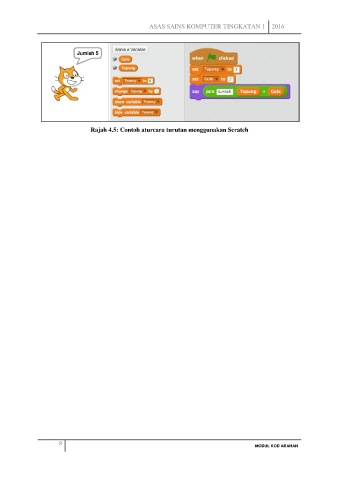 ASAS SAINS KOMPUTER TINGKATAN 1 2016 Rajah 4.5: Contoh aturcara turutan menggunakan Scratch 8 MODUL KOD ARAHAN