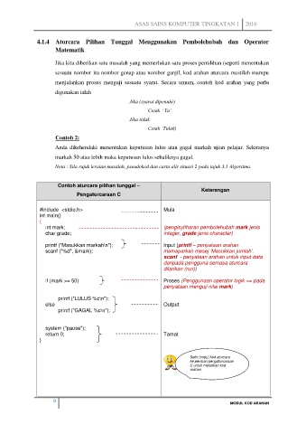 4.1.4 Aturcara Pilihan Tunggal Menggunakan Pembolehubah dan Operator