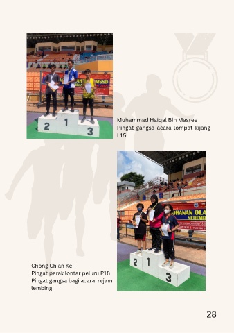 Muhammad Haiqal Bin Masree Pingat gangsa acara lompat kijang L15 Chong Chian Kei Pingat perak lontar peluru P18 Pingat gangsa bagi acara rejam lembing 28