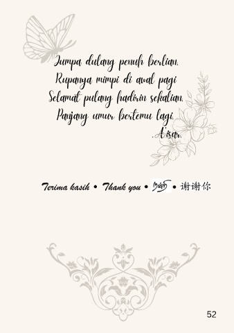 Jumpa dulang penuh berlian, Rupanya mimpi di awal pagi Selamat pulang hadirin sekalian, Panjang umur bertemu lagi. .A'isar. 52