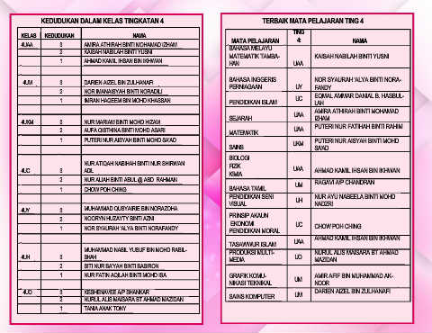 KEDUDUKAN DALAM KELAS TINGKATAN 4 TERBAIK MATA PELAJARAN TING 4