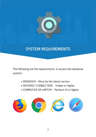 The following are the requirements to access the database ACCESSING THE SYSTEM