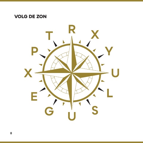 VOLG DE ZON 3 Antwoord:............................................. letters van dat woord. Focus je niet te veel op het woord ‘zon’, maar vooral op de 8 9