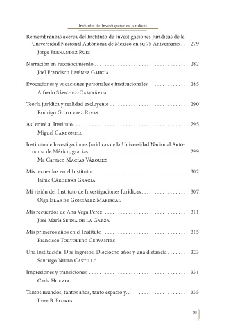 Mi visión del Instituto de Investigaciones Jurídicas ................. 307
