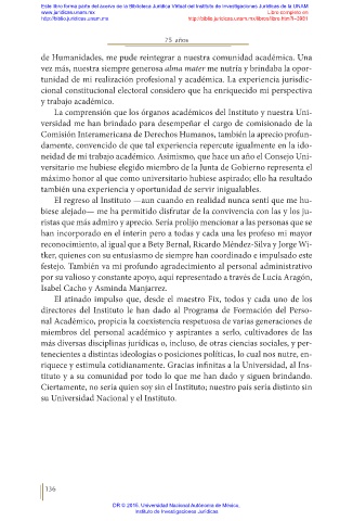de Humanidades, me pude reintegrar a nuestra comunidad académica. Una
