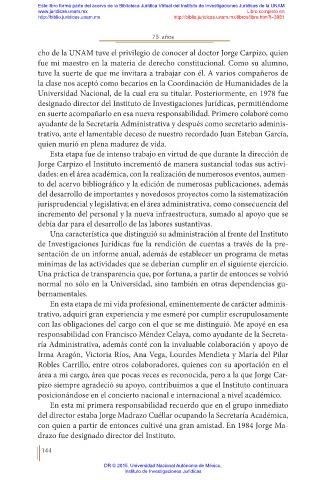 cho de la UNAM tuve el privilegio de conocer al doctor Jorge Carpizo, quien
