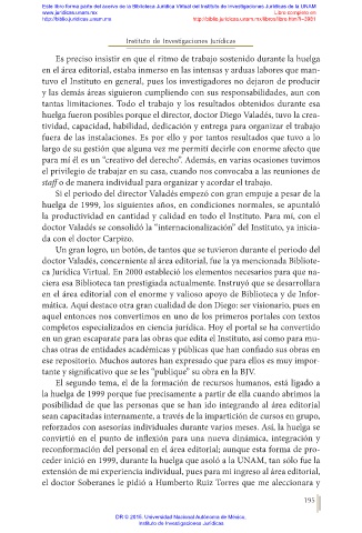 huelga fueron posibles porque el director, doctor Diego Valadés, tuvo la crea-