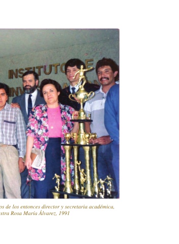 Algunos integrantes del equipo de fútbol, acompañados de los entonces director y secretaria académica,