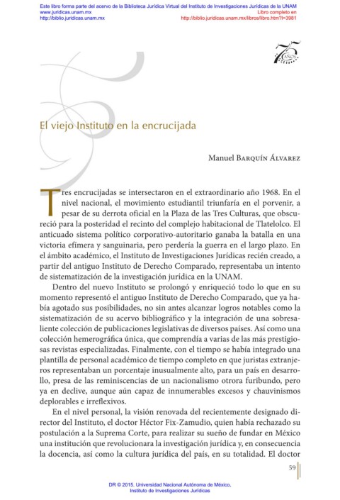 el ámbito académico, el Instituto de Investigaciones Jurídicas recién creado, a