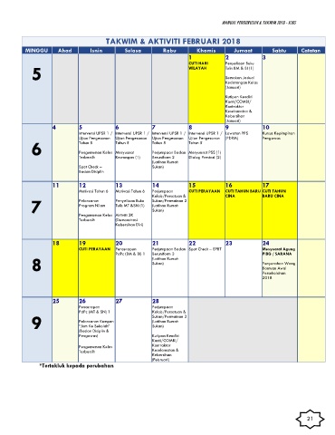 TAKWIM & AKTIVITI FEBRUARI 2018