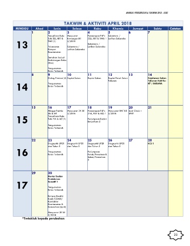 TAKWIM & AKTIVITI APRIL 2018