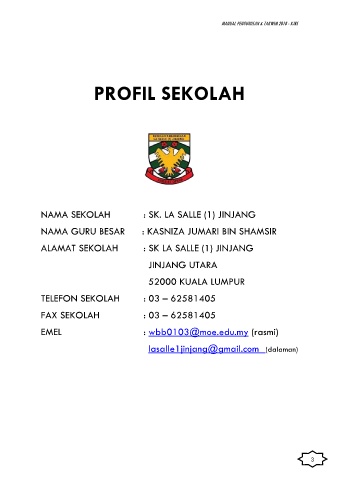 NAMA SEKOLAH : SK. LA SALLE (1) JINJANG
