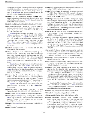 ghāsa° food & clothing (q. v.) J ii.79 (vattha°); Pv i.10 (bho- Chindati [Vedic chid in 3 forms viz. 1. (Perf.) base chid; 2. Act.