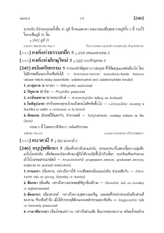 [245] อนันตริยกรรม 5 (กรรมหนักที่สุดฝายบาปอกุศล ซึ่งใหผลรุนแรงตอเนื่องไป โดย