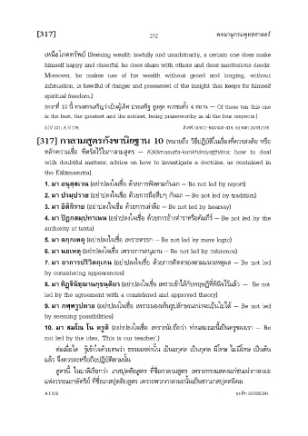[317] กาลามสูตรกังขานิยฐาน 10 (หมายถึง วิธีปฏิบัติในเรื่องที่ควรสงสัย หรือ