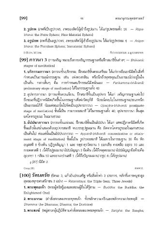 [99] ภาวนา 3 (การเจริญ หมายถึงการเจริญกรรมฐานหรือฝกสมาธิขั้นตางๆ — Bhàvanà: