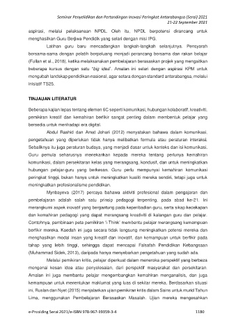 Beberapa kajian lepas tentang elemen 6C seperti komunikasi, hubungan kolaboratif, kreativiti,