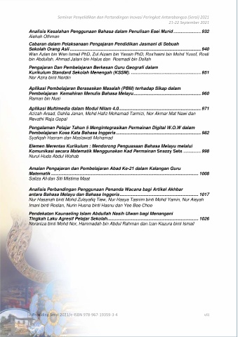 Analisis Kesalahan Penggunaan Bahasa dalam Penulisan Esei Murid ...................... 932