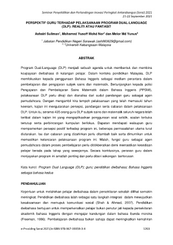Kata kunci: Program Dual Language (DLP); guru; pendidikan dwibahasa; Bahasa Inggeris