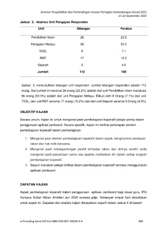 Jadual 3, menunjukkan bilangan unit responden. Jumlah bilangan responden adalah 112
