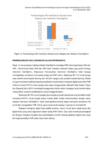 Rajah 13: Perbandingan Min Kehadiran Keseluruhan Selepas dan Sebelum OwnDigFun