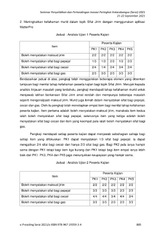 tumpuan bagi menilai tahap kefahaman peserta kajian bagi topik Sifat Jirim. Merujuk kepada