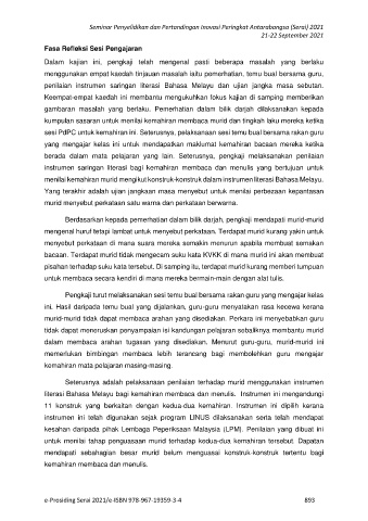 penilaian instrumen saringan literasi Bahasa Melayu dan ujian jangka masa sebutan.