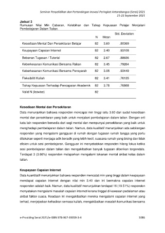 Kesediaan Mental Dan Persekitaran Belajar 82 3.60 .80369