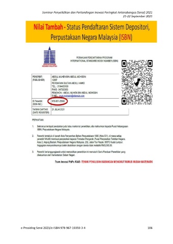 Seminar Penyelidikan dan Pertandingan Inovasi Peringkat Antarabangsa (Serai) 2021 21-22 September 2021 e-Prosiding Serai 2021/e-ISBN 978-967-19359-3-4 106